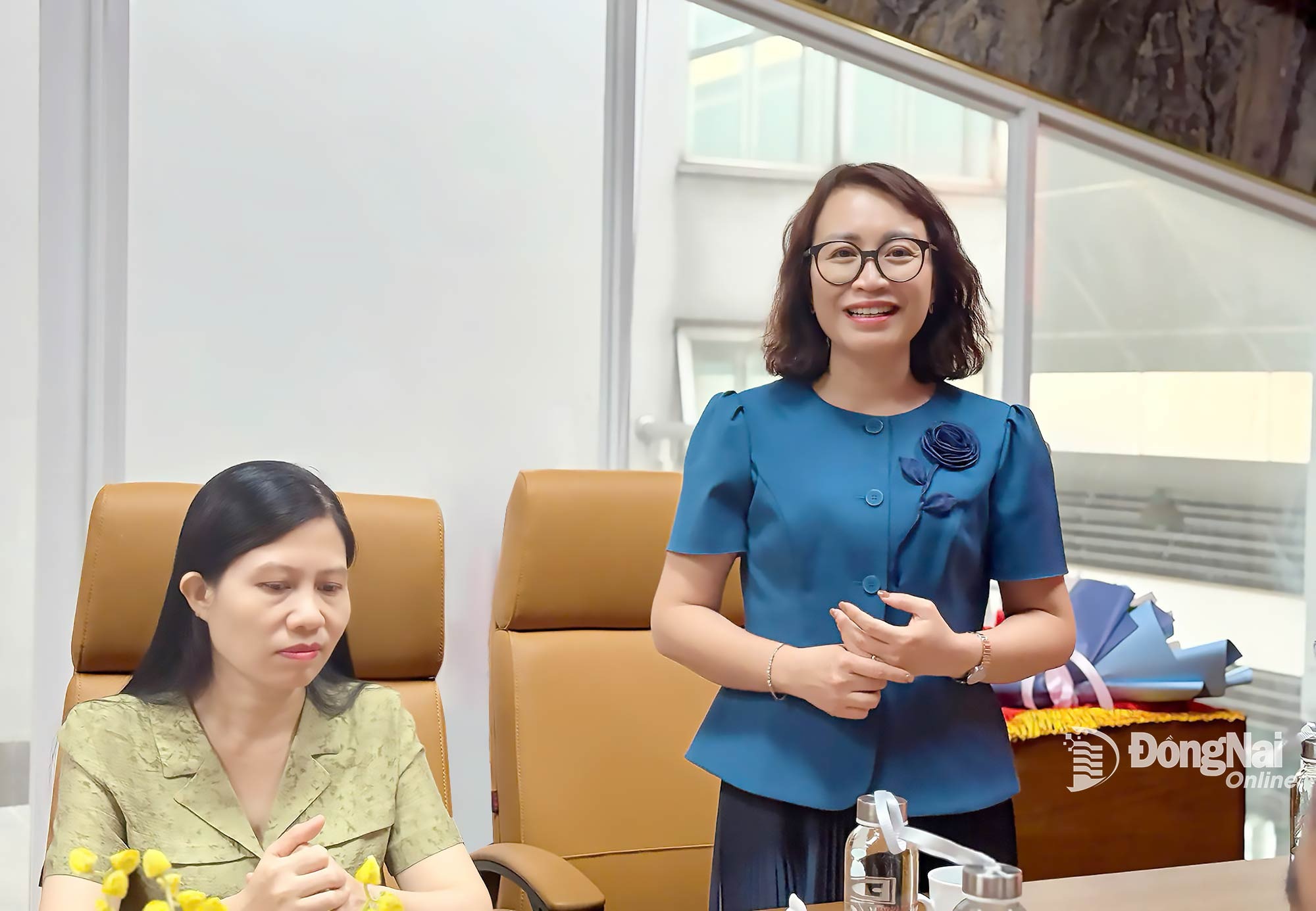 | Editorial Board of Dong Nai Newspaper and Radio, Television present flowers to leaders of the Dong Nai Farmers’ Association. Photo: Nguyen Ngan |