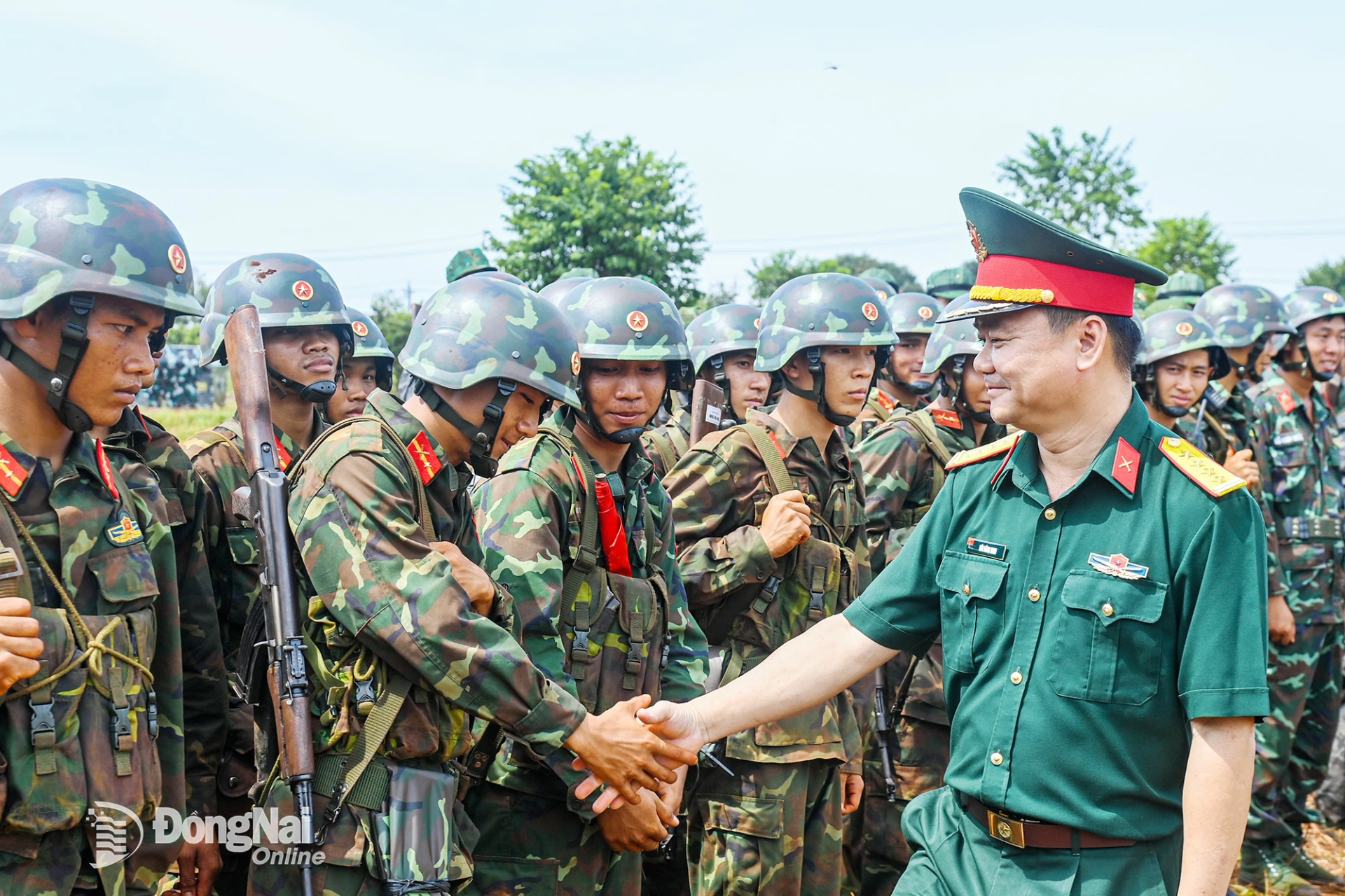 Senior Colonel Bui Dang Ninh, Member of the Provincial Party Committee, Political Commissar of Dong Nai Provincial Military Command, visits forces participating in the provincial regional defense exercise. Photo: Van Chung |