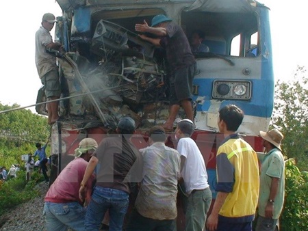 The train's driver, Dang Quang Hien, 30, was seriously injured in the damaged driver's cabin.