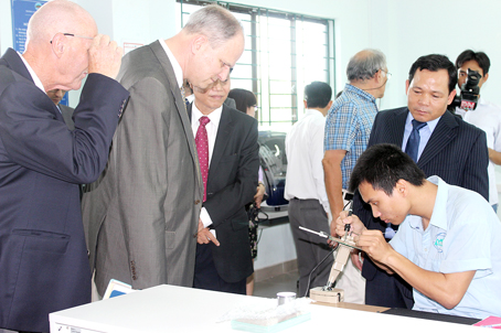 (ĐN)- German Ambassador to Vietnam Carl Georg Christina Berger on April 6 paid a working visit to Lilama 2 Vocational College in Long Thanh district to learn about its high quality training program.