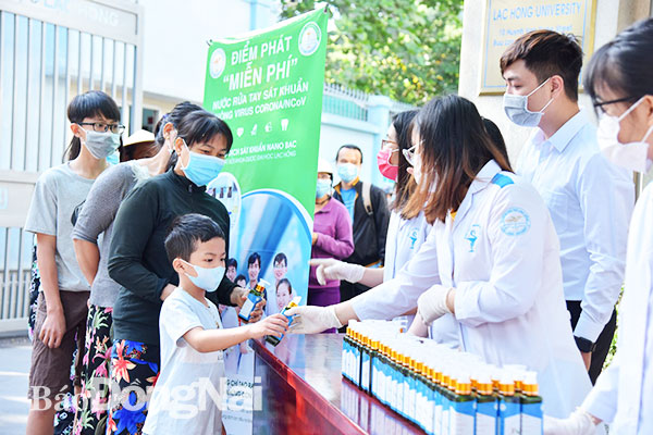 So far, nearly 3,000 hand wash bottles, which were produced by Lac Hong University, have been presented to agencies, organizations and residents in Bien Hoa city.
