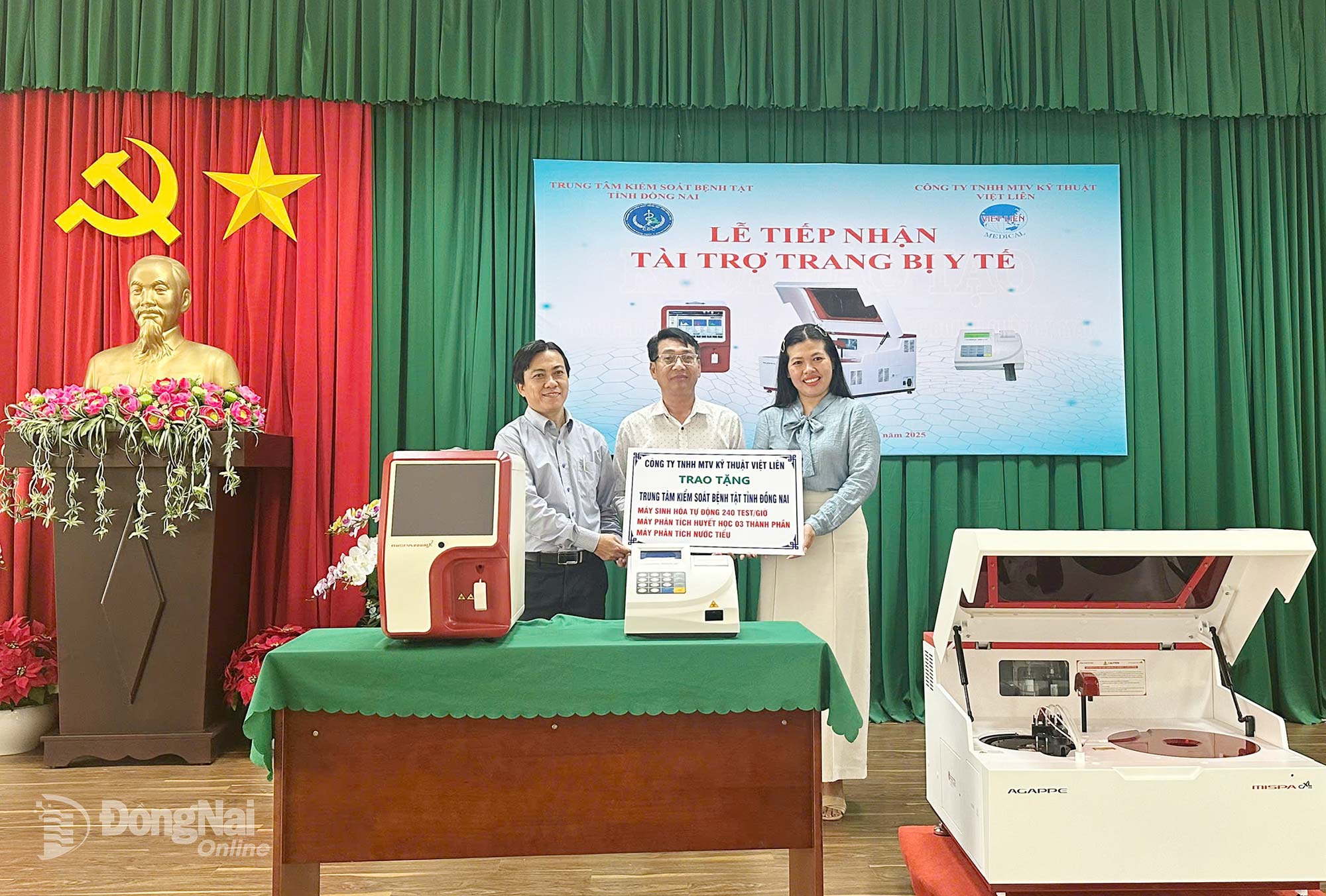 Chiều 28-8, Trung tâm Kiểm soát bệnh tật tỉnh (CDC) Đồng Nai tiếp nhận 3 máy xét nghiệm gồm: máy xét nghiệm sinh hóa tự động 240 test/h; máy huyết học 3 thành phần và máy phân tích nước tiểu do Công ty TNHH Thiết bị Y tế Việt Liên (Thành phố Hồ Chí Minh) trao tặng. Tổng trị giá 372 triệu đồng.