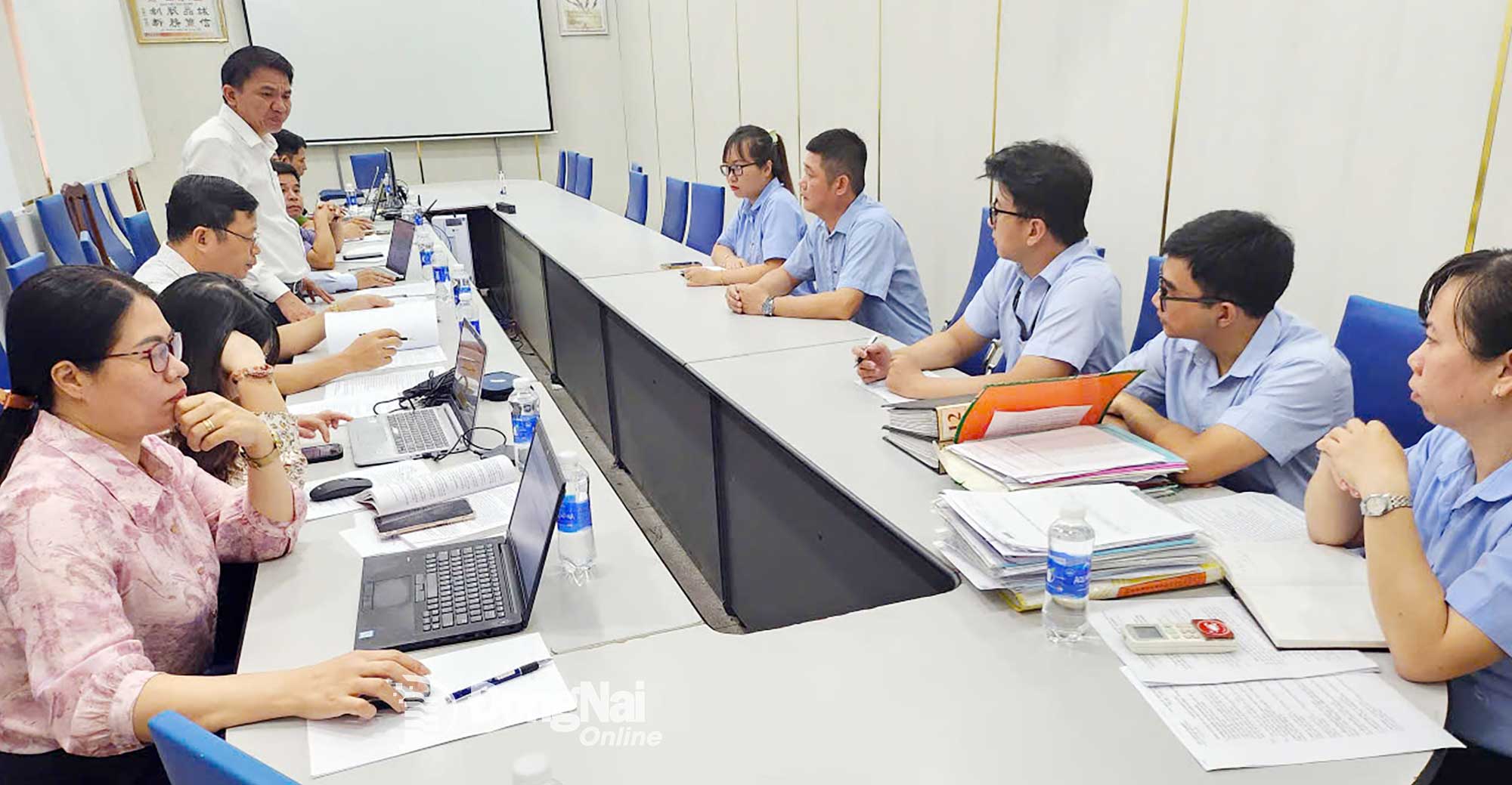 | Đoàn kiểm tra liên ngành trao đổi với đại diện doanh nghiệp các nội dung phục vụ công tác kiểm tra. Ảnh: Viết Cường |