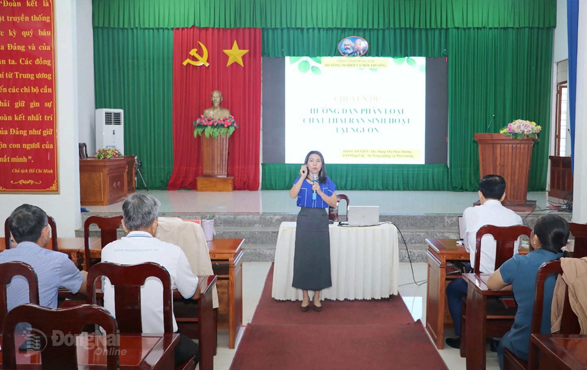 Báo cáo viên Sở Nông nghiệp và Môi trường đã hướng dẫn phân loại chất thải rắn sinh hoạt tại nguồn và các quy định xử phạt hành chính trong lĩnh vực môi trường theo Luật Bảo vệ môi trường 2020 và các văn bản quy phạm pháp luật có liên quan. Đồng thời truyền đạt kỹ năng truyền thông bảo vệ môi trường bằng nhiều kênh, nhiều cách cho lực lượng tuyên truyền viên nòng cốt tại các khu dân cư nhằm tuyên truyền, thuyết phục, vận động người dân thực hiện phân loại chất thải rắn sinh hoạt tại nguồn, phòng chống rác thải nhựa và các quy định về bảo vệ môi trường đến cộng đồng dân cư.