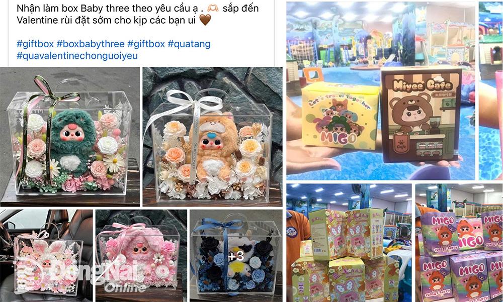 | Các loại hộp quà "Baby Three" được quảng cáo, giới thiệu trên các hội nhóm mạng xã hội vào dịp Valentine năm nay. Ảnh chụp màn hình |