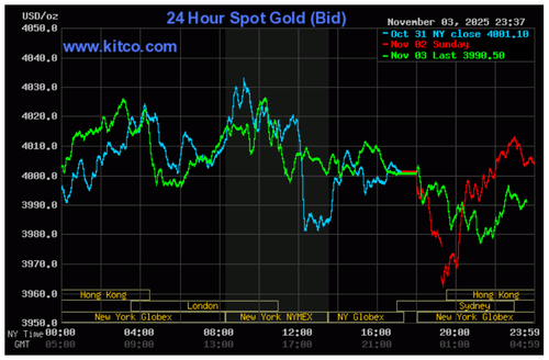 Tính đến 11 giờ 30 phút ngày 4-11 (giờ Việt Nam), giá vàng thế giới giảm 10,6 USD/ounce so kết phiên hôm trước xuống mức 3.990,5 USD/ounce.