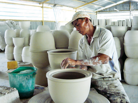 | Sản xuất gốm tại Cơ sở gốm Minh Mẫn, phường Bửu Hòa. Ảnh: V. NAM |