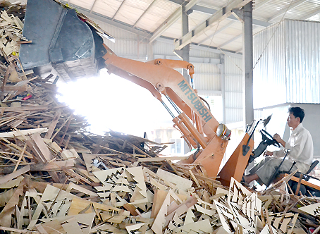 | Gỗ vụn được Công ty Minh Hưng mua về xay thành mùn cưa để sản xuất củi ép. |
