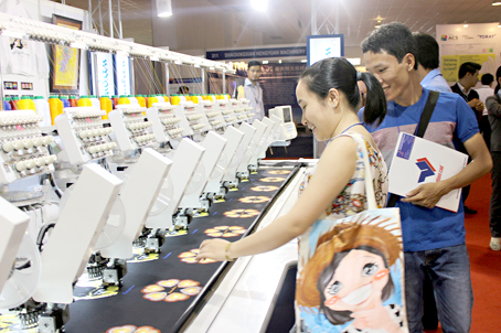 | Hội chợ triển lãm máy móc và phụ liệu hàng dệt may quốc tế tại TP.Hồ Chí Minh có rất ít hàng Việt. |