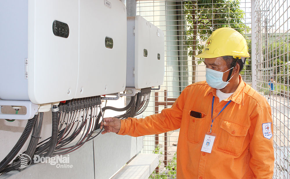 | Hệ thống đấu nối điện mặt trời mái nhà tại một công ty ở Khu công nghiệp Tam Phước (TP.Biên Hòa). Ảnh: L.An |
