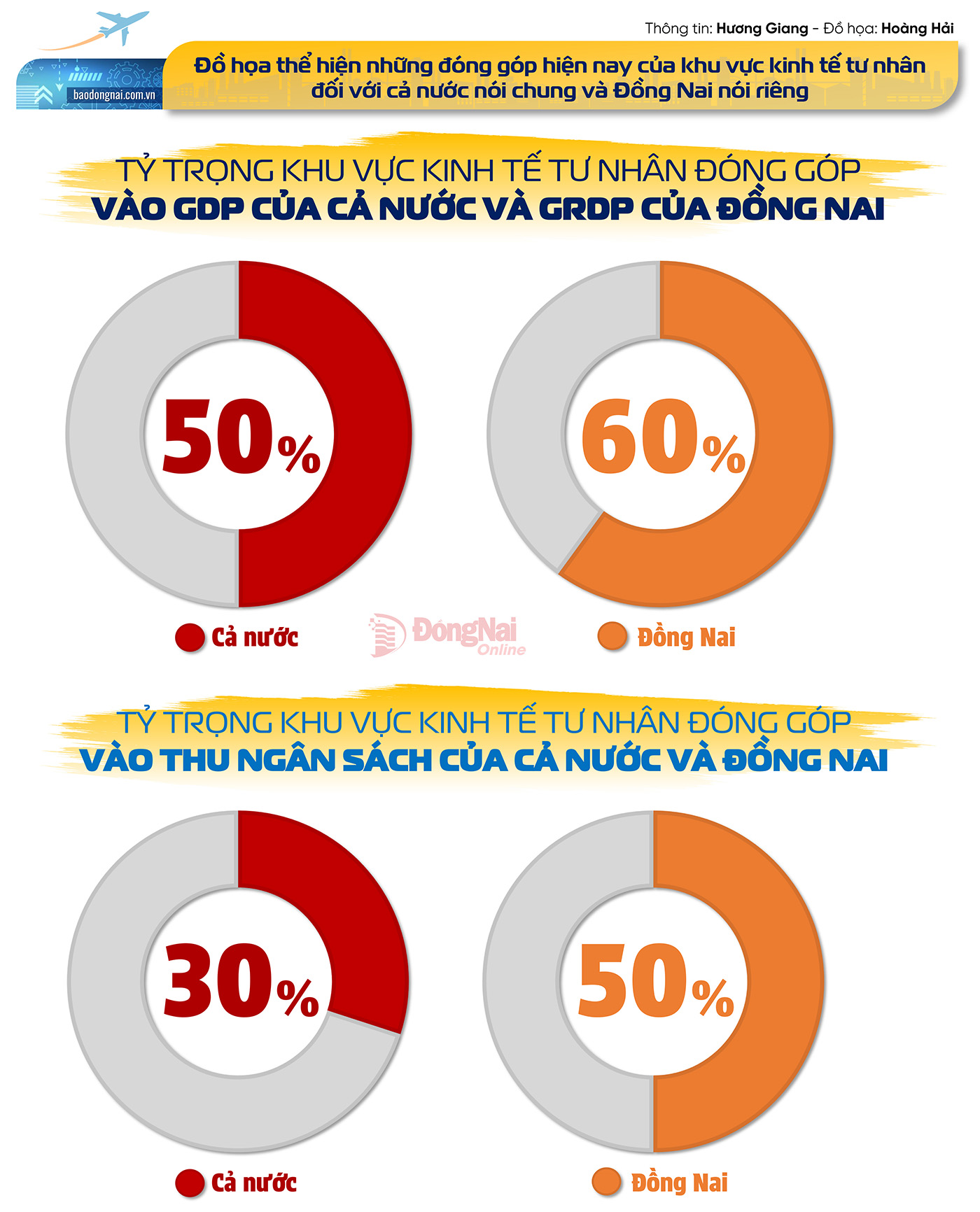 Tại Đồng Nai, đến nay đã có hơn 56 ngàn DN đăng ký trên Cổng thông tin quốc gia về đăng ký DN với số vốn gần 550 ngàn tỷ đồng. Khu vực KTTN tại Đồng Nai hiện đóng góp cho ngân sách nhà nước hơn 30 ngàn tỷ đồng/năm, chiếm hơn 50% thu ngân sách của tỉnh; đóng góp cho GRDP của tỉnh trên 60%. Đồng thời, KTTN ở Đồng Nai cũng tạo ra nhiều việc làm cho nhiều lao động trong và ngoài tỉnh.