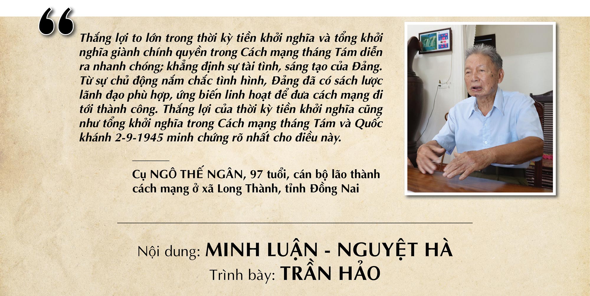Dưới sự lãnh đạo sáng suốt của Đảng, đứng đầu là Chủ tịch Hồ Chí Minh, toàn thể nhân dân Việt Nam đã nhất tề đứng lên tiến hành tổng khởi nghĩa giành chính quyền, khai sinh ra nước Việt Nam Dân chủ Cộng hòa - nhà nước công - nông đầu tiên ở Đông Nam Á. Cuộc cách mạng mà theo đánh giá của các chuyên gia là cuộc cách mạng “long trời, lở đất”, làm rung chuyển cục diện chính trị không chỉ trong khu vực, mà còn trên phạm vi toàn thế giới. Chỉ trong 15 năm ngắn ngủi, một Đảng non trẻ đã dẫn dắt dân tộc ta từ đêm tối nô lệ đi tới mùa thu độc lập. Đó là minh chứng hùng hồn cho sức mạnh của ánh sáng cách mạng - ánh sáng của Đảng soi đường.