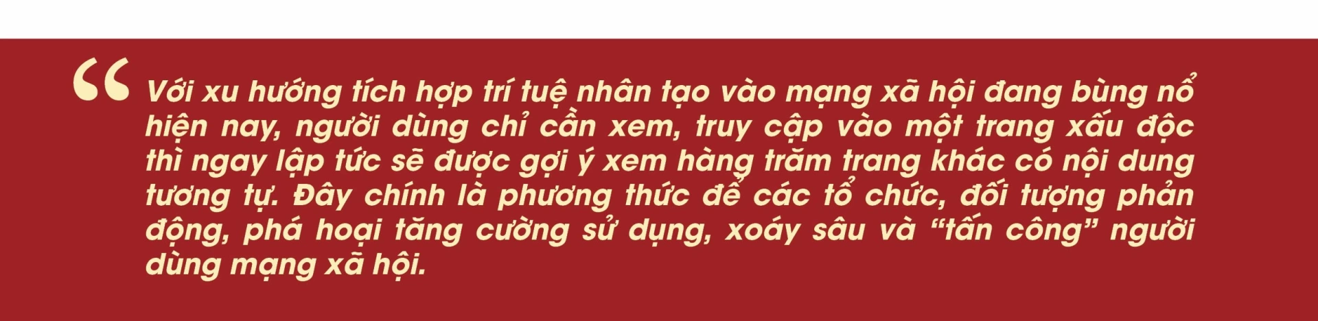 Ông Ngô Minh Hiếu, chuyên gia Trung tâm Giám sát và an toàn không gian mạng quốc gia chia sẻ tại chương trình Tập huấn An toàn thông tin trong thời đại số sáng 10-10-2025 do Tỉnh đoàn Đồng Nai tổ chức: Với xu hướng tích hợp trí tuệ nhân tạo vào mạng xã hội đang bùng nổ hiện nay, người dùng chỉ cần xem, truy cập vào một trang điện tử, tin, bài xấu, độc thì ngay lập tức sẽ được gợi ý xem hàng trăm trang khác có nội dung tương tự. Đây chính là phương thức để các tổ chức, đối tượng tăng cường sử dụng, xoáy sâu và “tấn công” người dùng mạng xã hội.