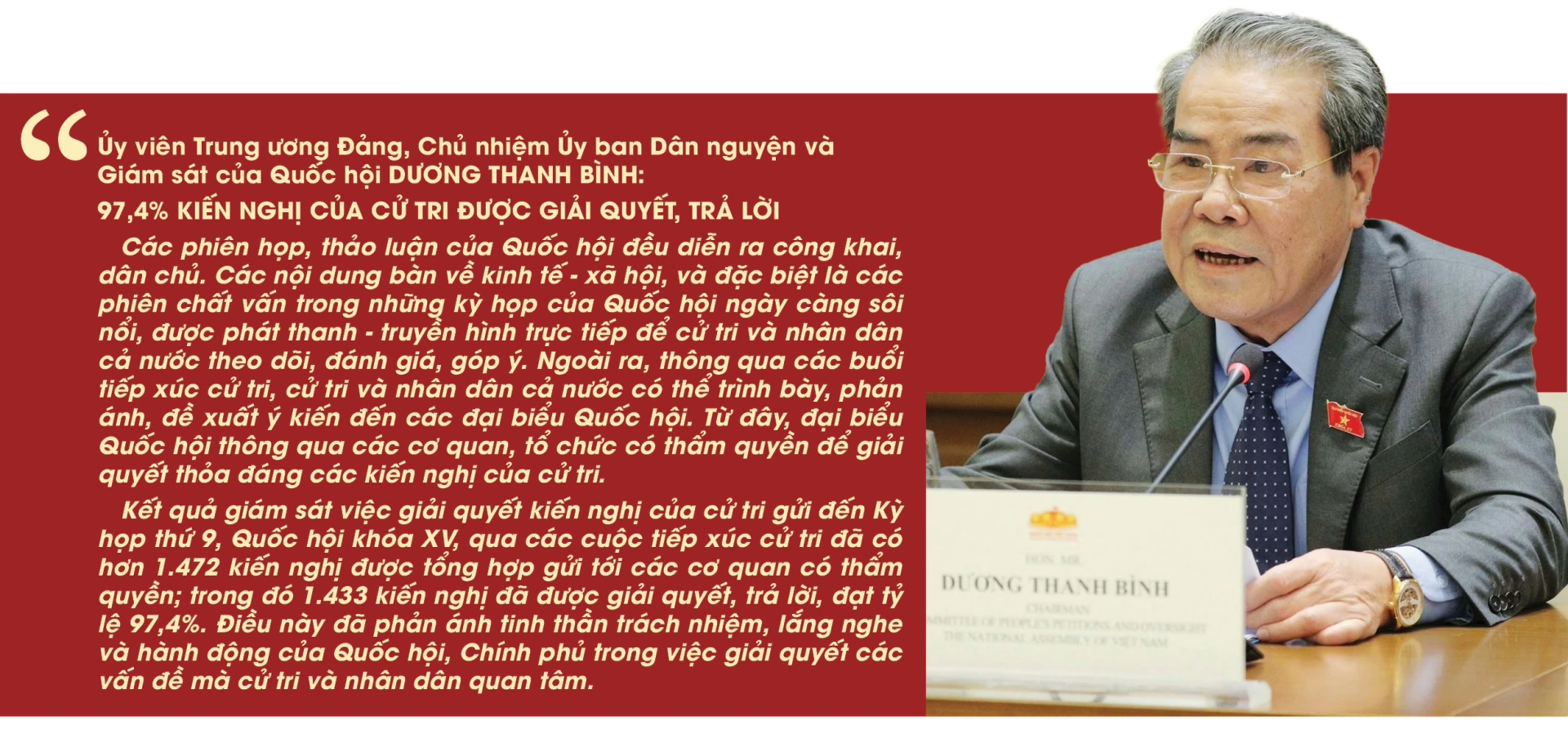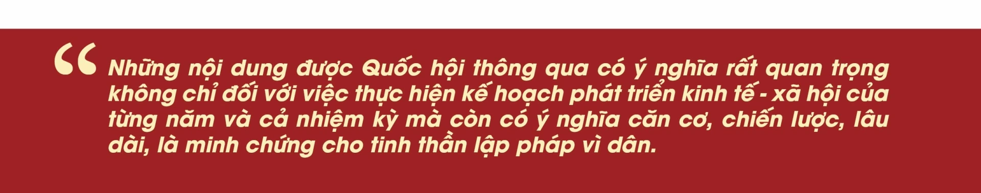 Từ khi ra đời tới nay, Quốc hội ta đã hoàn thành xuất sắc vai trò, sứ mệnh của mình đối với đất nước, với dân tộc. Với tính chất Nhà nước ta là nhà nước pháp quyền xã hội chủ nghĩa, vì vậy, tất cả chủ trương, đường lối của Đảng muốn đi vào đời sống, để toàn dân nghiêm túc thực hiện đều phải được thể chế hóa bằng hệ thống pháp luật. Đầu nhiệm kỳ Quốc hội khóa XV diễn ra trong bối cảnh đặc biệt - đại dịch Covid-19 ảnh hưởng sâu sắc đến mọi lĩnh vực; tình hình thế giới có nhiều biến động phức tạp; trong nước vừa tập trung khôi phục kinh tế, vừa triển khai các chương trình mục tiêu quốc gia, thúc đẩy chuyển đổi số, phát triển hạ tầng chiến lược và hoàn thiện thể chế kinh tế thị trường định hướng xã hội chủ nghĩa. Chính trong bối cảnh đó, Quốc hội đã thể hiện rõ bản lĩnh, trí tuệ, đổi mới mạnh mẽ phương thức hoạt động, kịp thời đưa ra các quyết sách quan trọng, có tầm chiến lược, góp phần phục hồi và phát triển kinh tế - xã hội, giữ vững ổn định chính trị và bảo đảm an sinh xã hội.