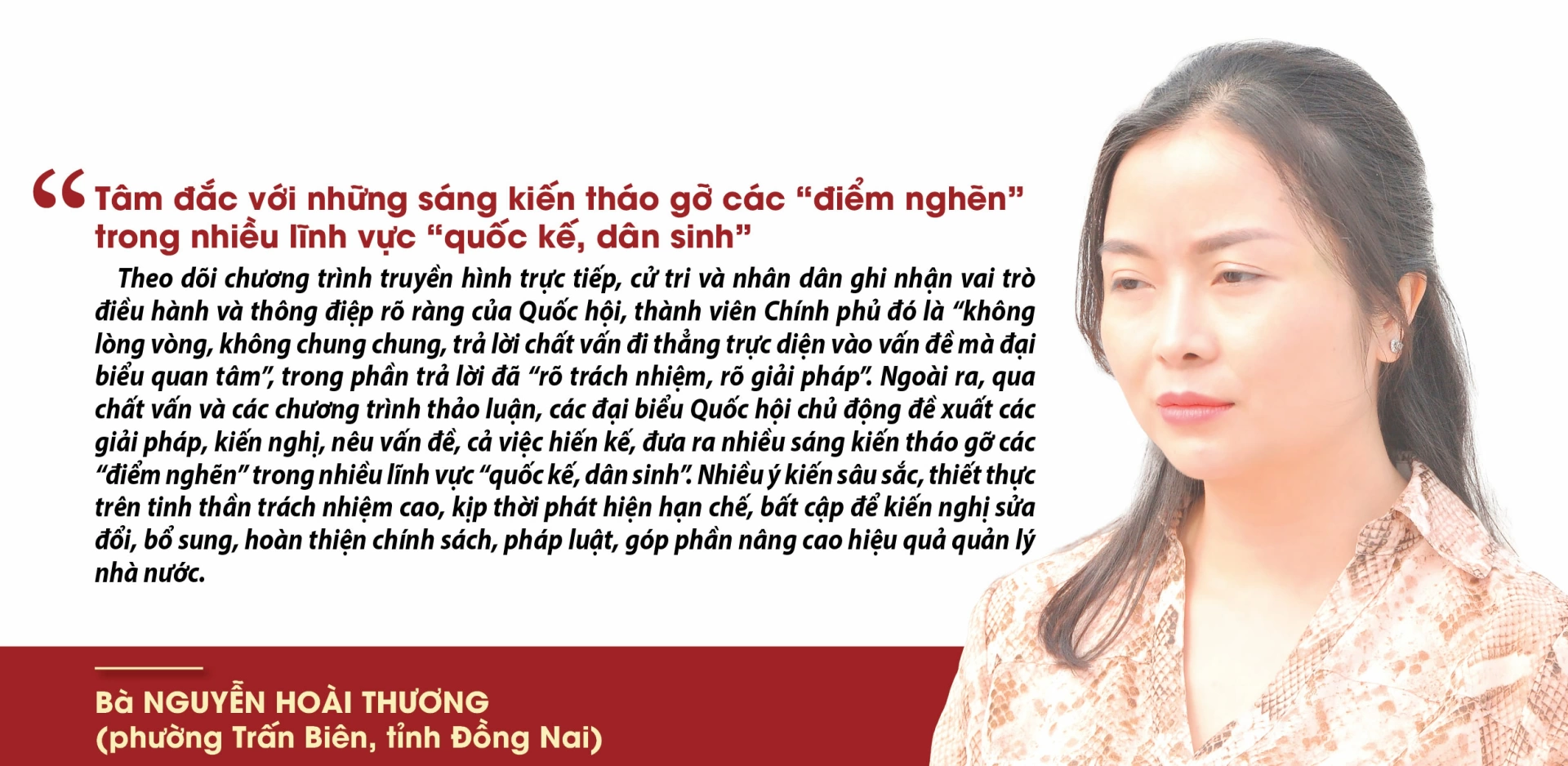 Về hoạt động lập pháp, đã có nhiều luật, bộ luật được ban hành với chất lượng ngày càng cao. Hệ thống pháp luật không ngừng được hoàn thiện. Chất lượng hoạt động giám sát tối cao và chất vấn đã đi vào thực chất với những vấn đề mà cử tri quan tâm. Nhiều vấn đề quan trọng đã được Quốc hội xem xét, quyết định, nhất là các chủ trương về các dự án lớn của đất nước; việc sắp xếp đơn vị hành chính cấp tỉnh, bỏ cấp huyện, thực hiện mô hình chính quyền địa phương 2 cấp... Ngoài ra, Quốc hội cũng là cơ quan đi đầu trong việc ứng dụng khoa học - công nghệ, chuyển đổi số…