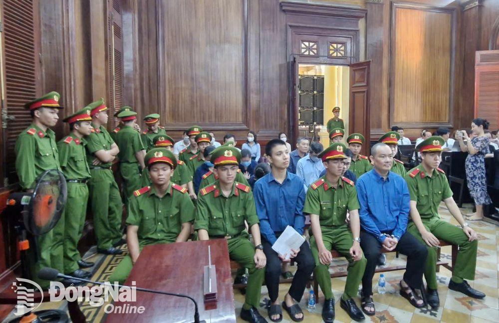 | Bị cáo Hồ Đình Thái Hòa cùng các bị cáo khác tại phiên tòa xét xử. Ảnh: Tố Tâm |