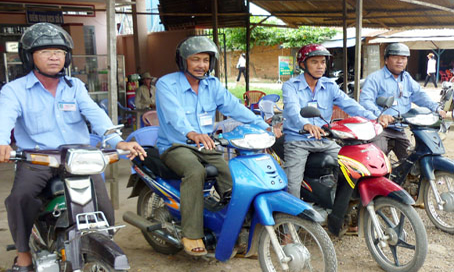 Đội xe ôm cơ động bắt cướp ở xã Phú Bình trong giờ trực. Ảnh: Đ.Việt