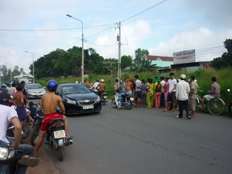 | Nhiều người dân hiếu kỳ theo dõi vụ tai nạn |
