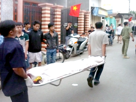 | Thi thể chị Đặng Thị Kiều được đưa ra khỏi hiện trường. |
