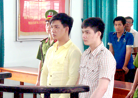| Hai anh em Hòa và Hiệp (áo sọc) tại phiên tòa xét xử vào cuối tháng 6-2013. |