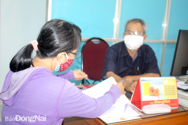| Luật sư Ngô Văn Định, Phó giám đốc Trung tâm Tư vấn pháp luật tỉnh (Hội Luật gia tỉnh) tư vấn pháp luật về hôn nhân - gia đình cho một người dân. Ảnh: Đ.Phú |