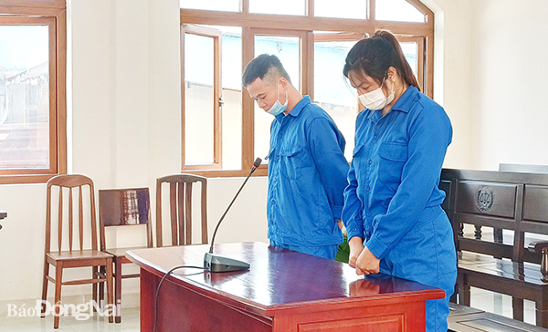 | 2 bị cáo Trịnh Thị Thu và Đào Văn Đáng tại phiên tòa xét xử ngày 10-11. Ảnh: T.Tâm |