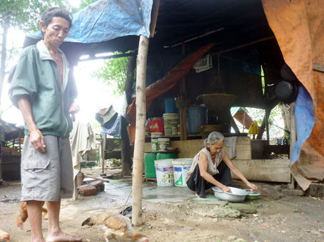 Đã nhiều năm nay, anh Nguyễn Tuấn Khanh cùng mẹ già phải chịu cảnh sống chui rúc trong túp lều che tạm dưới nền đất tù đọng để chờ đợi được giải tỏa theo thông báo của các cơ quan chức năng. Anh Khanh cho biết: “Tài sản của gia đình tôi giờ còn lại miếng đất vài trăm mét vuông đang chờ đền bù, giải tỏa. Thế nhưng, đã mấy năm nay gia đình tôi cũng như nhiều hộ dân sống quanh đây không làm ăn được gì, vì đất thì vẫn nằm đó, mà muốn dời đi cũng không thể, do không có tiền. Muốn có chỗ ở ổn định để tính chuyện làm ăn nhưng tài sản giá trị nhất là mảnh đất thì vẫn cứ “bất động”. Tương tự, gia đình chị Lương Thị Nga (hàng xóm của anh Khanh) cũng đang trong tình trạng chờ đợi giải tỏa, đền bù đất nhanh chóng để có cuộc sống tốt hơn. Bên túp lều che chắn tạm bợ, chị Nga cho biết: “Đã mấy năm sống tạm trong cảnh này chúng tôi rất muốn được đền bù sớm để còn tính chuyện làm ăn, nhưng đến nay vẫn chưa thấy tăm hơi gì. Giờ muốn bỏ đi nhưng đất chưa được giải tỏa thì biết lấy tiền đâu để mua đất cất nhà ở chỗ mới?” .