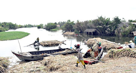 Mỗi ngày vợ chồng ông Bảy chở gần chục chuyến, công việc cứ thế kéo dài cho đến khi số mía nhận chở ở trên ruộng không còn. Mỗi chuyến họ được trả tiền công từ 100-130 ngàn đồng tùy vào quãng đường di chuyển, trong đó chi phí cho xăng dầu chạy ghe chiếm hơn phân nửa. Trời hạn, người làm nghề này càng ăn nên làm ra.