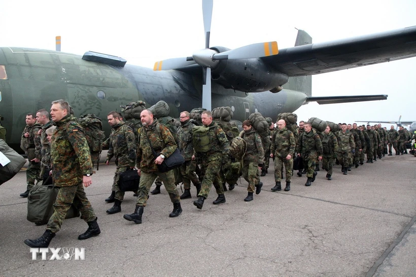 | Binh sĩ Đức được triển khai tới Karmelava (Litva) để tham gia sứ mệnh của Tổ chức Hiệp ước Bắc Đại Tây Dương (NATO). Ảnh: AFP/TTXVN |