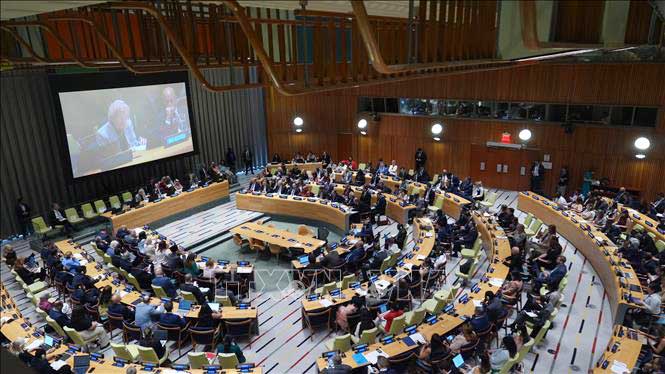 | Toàn cảnh Hội nghị quốc tế của Liên hợp quốc về xung đột Israel - Palestine tại New York, Mỹ, ngày 28-7-2025. Ảnh: AA/TTXVN |