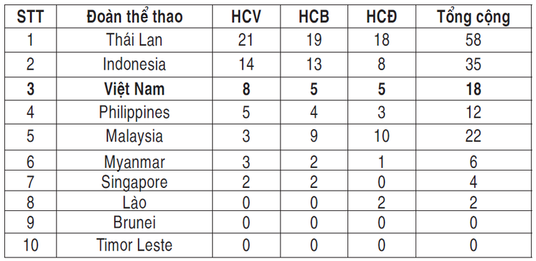 Bảng xếp hạng thành tích huy chương: