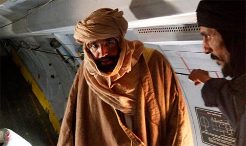 | Saif al-Islam Gadhafi trên máy bay sau khi bị bắt. Ảnh: Sky News |