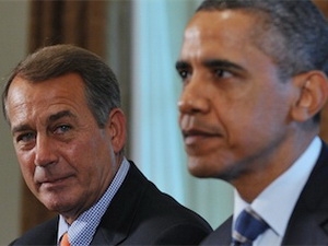 | Lãnh đạo phe Cộng hòa, Chủ tịch Hạ viện Mỹ John Boehner (trái) và Tổng thống Mỹ Obama. |