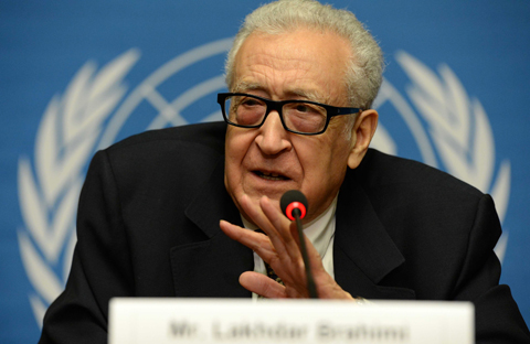 | Đặc phái viên LHQ và AL Lakhdar Brahimi phát biểu trong buổi họp báo tại Geneva, Thụy Sỹ ngày 11/2. Ảnh: THX-TTXVN |