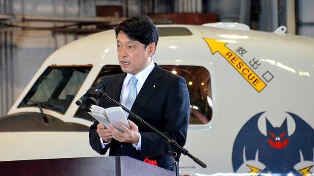 | Bộ trưởng Quốc phòng Nhật Itsunori Onodera phát biểu tại lễ ra mắt một phi đội máy bay cảnh báo sớm ở Okinawa (Nguồn: AFP) |