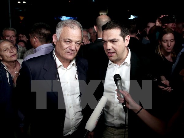 | Thủ tướng Hy Lạp Alexis Tsipras (phải) phát biểu trong cuộc họp báo ở Athen. (Nguồn: AFP/TTXVN) |
