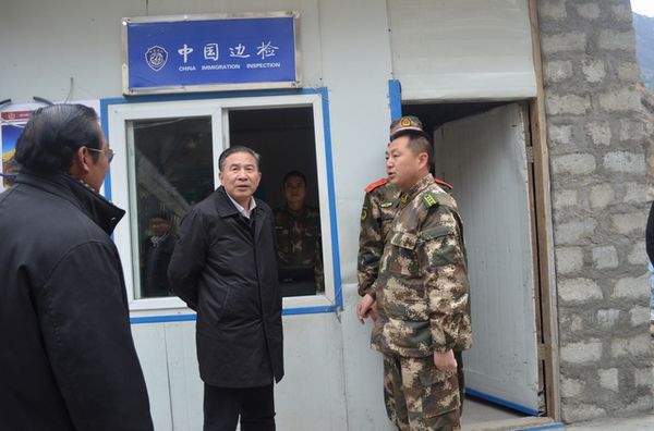 | Nguyên Cục trưởng Cục an ninh khu tự trị Tây Tạng Nhạc Đại Khắc (giữa). (Nguồn: news.cn) |