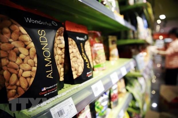 | Sản phẩm hạnh nhân của Mỹ được bày bán tại một siêu. (Ảnh: EPA/TTXVN) |
