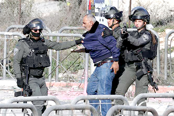 | Lực lượng an ninh Israel bắt giữ người biểu tình Palestine tại TT.Al-Ram, Khu Bờ Tây ngày 27-1-2023. Ảnh: AFP/TTXVN |