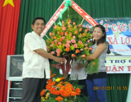 Ông Huỳnh Văn Tới, Chủ tịch Liên đoàn cầu lông tỉnh Đồng Nai tặng hoa cho Ban chủ nhiệm.