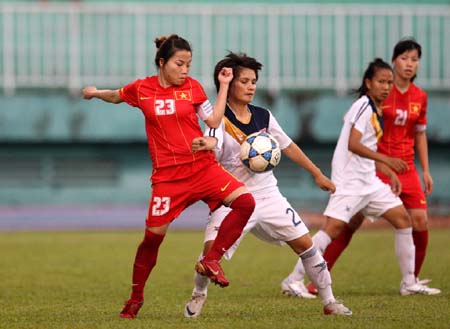 Thắng đậm 7-0 trước đối thủ Lào, tuyển nữ Việt Nam đã vững tiến vào trận chung kết tranh cúp Vàng vô địch tại giải vô địch bóng đá nữ Đông Nam Á 2012.
