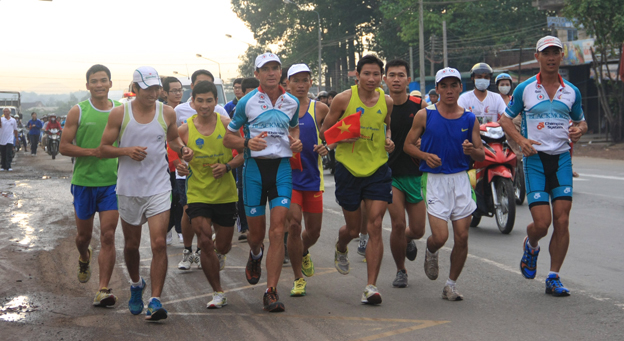 Ở chặng này, các VĐV điền kinh Đồng Nai, 4 sinh viên ở TP.Hồ Chí Minh đã cùng tham gia đồng hành với ông Pat Farmer và Đình Huy.