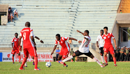 | Nếu tiếp tục chơi máu lửa, chặt chẽ, đội Đồng Nai (áo đỏ) hy vọng có điểm trong cuộc đối đầu với Thanh Hóa. Ảnh: H. ANH |