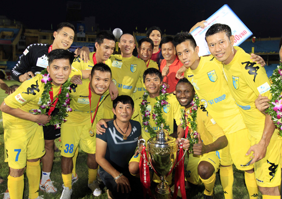Các cầu thủ HN T&T bên Cúp vô địch V-League 2013