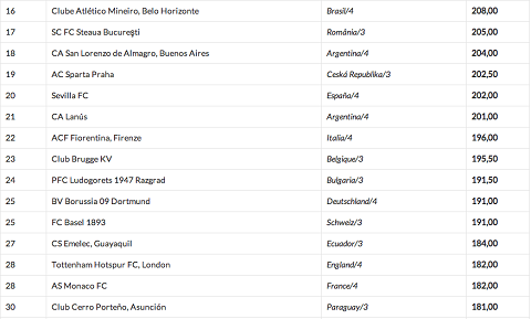 Việc Man City, ĐKVĐ Premier League không có mặt trong Top 10 CLB hàng đầu thế giới năm 2014 cũng gây tranh cãi. Đội bóng của HLV Manuel Pellegrini xếp ở vị trí 32, kém hơn nhiều so với Arsenal, Chelsea (xếp thứ 11) và Tottenham (28). Liverpool, á quân Premier League mùa trước xếp thứ 83 còn Man United xếp ở vị trí 128.