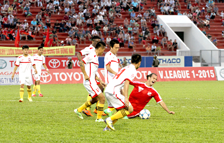 Đội đầu bảng B.BD còn “đau” hơn khi đã sớm có bàn mở tỷ số trên sân ĐTLA ngay từ phút thứ 4 (Tăng Tuấn) và phút 52 vẫn còn dẫn trước, nhưng lại thua ngược 1-3. 3 bàn thua của B.BD đều xuất phát từ những sai lầm cá nhân: 2 bàn đầu là lỗi trong chọn điểm rơi của thủ môn Quốc Thiện Esele, còn bàn thứ 3 là từ sự thiếu dứt khoát của trung vệ Phước Tứ. Điều đáng nói, trận này ông Lê Thụy Hải đã tung ra tất cả những bản hợp đồng đắt giá nhất, kể cả Công Vinh, Tấn Tài, nhưng lại thua bởi những con người mà B.BD đã đẩy ra đi. Trước CLB đã ruồng bỏ mình, Quang Thanh và đặc biệt là Chí Công đã chơi như thể chưa bao giờ được chơi. Cú lao vào đánh đầu dũng mãnh và sau đó là màn ăn mừng hết cỡ của Chí Công như trút hết sự ẩn ức của trung vệ từng suýt cùng đội bóng đất Thủ kéo nhau ra tòa này. Đây là lần đầu tiên trong lịch sử V.League, ĐTLA được tận hưởng hương vị chiến thắng trước B.BD trên sân nhà Tân An. Càng đáng ngạc nhiên, từ một đội bóng mới mùa rồi còn lập “kỷ lục” không thắng suốt 11 trận đầu mùa, sau vòng 7 ở mùa này “gạch” là đội duy nhất vẫn giữ được thành tích bất bại.