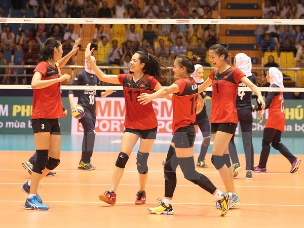 | Tuyển bóng chuyền nữ Việt Nam thắng ấn tượng ở ngày ra quân. (Ảnh: Quốc Khánh/TTXVN) |
