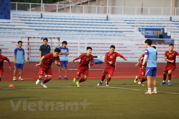 Theo lịch, U.22 Việt Nam sẽ tập tại sân Rizal Memorial vào lúc 17 giờ15 (giờ địa phương, tức 16 giờ 15 giờ Việt Nam) nhưng mới hơn 16 giờ toàn đội U.22 Việt Nam đã có mặt ở sân.