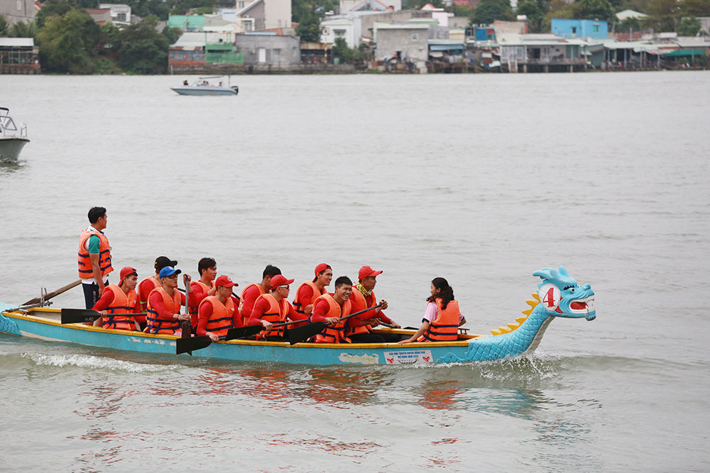 Ngoài xem đua thuyền, bà con được thưởng thức biểu diễn múa lân, trống hội do đội lân sư rồng Tam Hòa Đường biểu diễn và đặc biệt là màn biểu diễn ván bay nước (Flyboard) thú vị xen kẽ giữa các đợt đua.