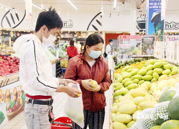 | Nhiều siêu thị trong tỉnh chủ động nguồn cung ứng nông sản, hàng hóa phục vụ dịp Tết Nguyên đán sắp tới Trong ảnh: Người dân chọn mua các loại trái cây tại một siêu thị ở TP.Biên Hòa. Ảnh: H.Quân |